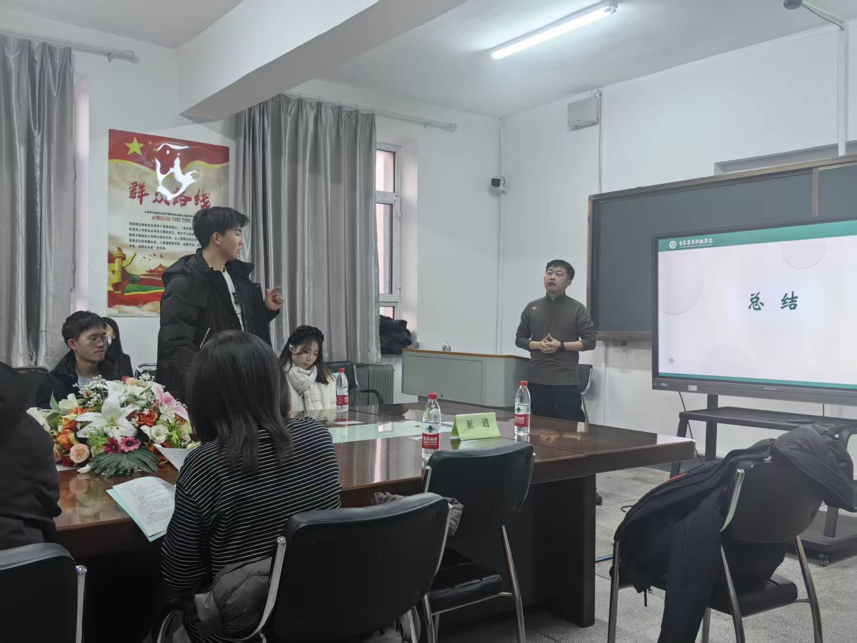 在政策宣讲环节,崔逍老师对参军入伍的报名条件、流程及优惠政策等进行了清晰细致的说明,涵盖学业支持(如保留学籍、考研专项计划)、经济补助与优待政策,以及军营经历对个人能力提升和长远发展的积极影响。讲解内容贴近学生实际,有效解答了大家在参军入伍方面的疑问与顾虑。